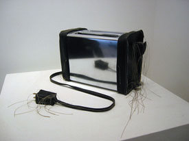 Image: Margarita Cabrera, Black Toaster, 2003, vinyl, thread, and appliance parts, 10 x 7 x 10 in. (artwork © Margarita Cabrera; photograph provided by the artist, Walter Maciel Gallery, and the Sweeney Art Gallery)