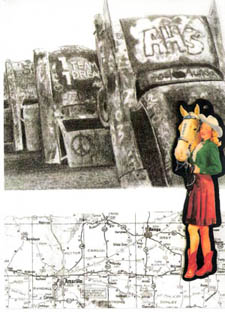 Steven Bleicher, Cadillac Ranch, 2008, graphite and mixed media, 14 x 11 in. (artwork © Steven Bleicher)