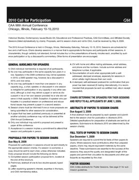 This twenty-four-page publication describes many of next year’s panels and presentations. CAA and session chairs invite your participation: please follow the instructions in the booklet to submit a proposal for a paper or presentation. This publication also includes a call for Poster Session proposals and describes the Open Forms sessions.