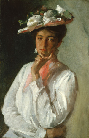 William Merritt Chase, Woman in White, summer 1902, oil on canvas, 29 x 19 in. Indianapolis Museum of Art, Indiana. Gift of Mrs. Albert E. Metzger in memory of Albert E. Metzger. 45.241 (artwork in the public domain)