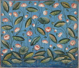 Nathdvara, Rajasthan, India, Lotus groves of the Yamuna, nineteeth century, pigments on cotton (pichhavai), 167.5 x 174 cm. National Gallery of Australia, NGA 2009.121 (artwork in the public domain)