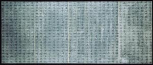 Kay Kang, Conversation with My Father, 1997, sumi ink on rice paper, with acrylic and mounted on canvas, 54 x 132 in. (artwork © Kay Kang)