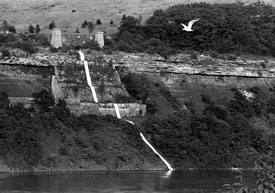 Michelle Stuart, Niagara Gorge Path Relocated, 1975, rocks, earth, and muslin-backed rag paper, 420 ft. x 62 in. (artwork © Michelle Stuart)
