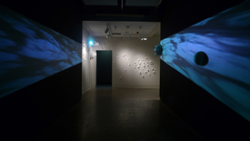 Patricia Villalobos Echeverría. Urban Institute of Contemporary Art, Grand Rapids, Michigan, December 9, 2011–February 16, 2012. Nodes [N 42° 57’47" W 85° 40’07"]. Video and sculptural installation.