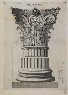 Antonio Labacco (engraving by Mario Labacco), Capital and base from the Temple of Castor and Pollux, Rome, 1559, plate 21, engraving, 13 x 9¼ in. Avery Architectural and Fine Arts Library, Columbia University, Speculum Romanae Magnificentiae Collection (artwork in the public domain)