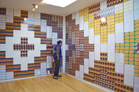 Michael Darmody, installation view of House of Cards, 2012, 3,600 souvenir Indian postcards mounted on foam board squares on four walls of a 12 x 18 x 10 ft. space (artwork © Michael Darmody; photograph by the artist)