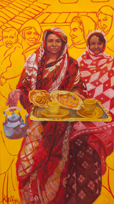 Joan Marie Kelly, Kolkata’s Welcome, 2012, oil on canvas, 60 x 34 in. (artwork © Joan Marie Kelly)