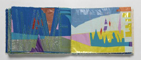 Dianna Frid, The Waves, 2011, unique book with canvas, cloth, embroidery floss, adhesives, paper, acrylic paint, and cellophane, 7½ x 11½ in. open, 7½ x 21½ in. closed (artwork © Dianna Frid)