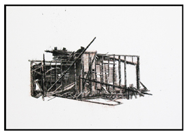 Margi Weir, Frontline/Detroit:Bones 2a, 2010, sumi ink, india ink, and tusche on rag paper, 29 x 40 in. (artwork © Margi Weir)