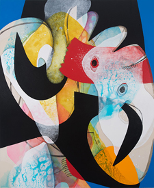 Carrie Moyer, Hook, Line & Sinker, 2012, acrylic, graphite, and glitter on canvas, 72 x 60 in. Collection of the artist (artwork © Carrie Moyer)