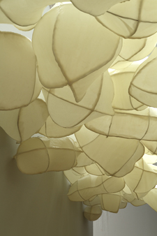 Lorrie Fredette, detail of Implementation of Adaptation, 2013, beeswax, tree resin, muslin, brass, nylon line, and wood, 288 sq. ft. (artwork © Lorrie Fredette)