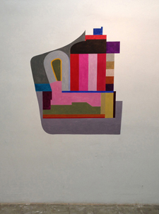 Julie Langsam. Espai-8, Barcelona, Spain, March 20–April 17, 2013. Buildings and Blueprints. Acrylic on wall.