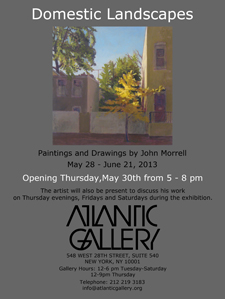 John Morrell. Atlantic Gallery, New York, May 28–June 21. Domestic Landscapes. Painting and drawing.