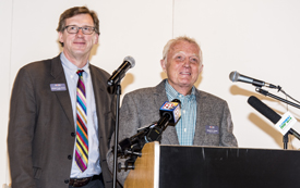 Don Tuski, president of the Maine College of Art (left) with Dan Crewe, brother of Bob Crewe and a college trustee since 2011