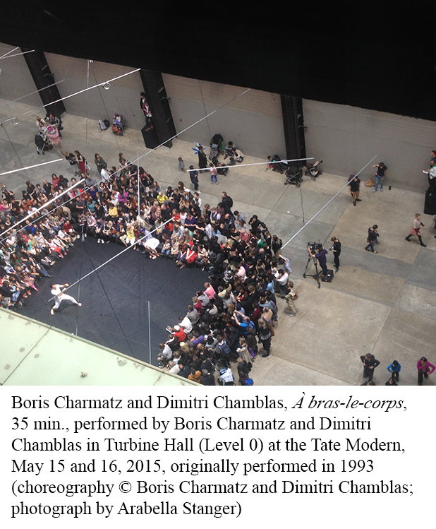 Boris Charmatz’s If Tate Modern Was Musée de la Danse? (May 15–16, 2015) is the focus of a new multimedia review on the Scalar platform, If caa.reviews were performance.reviews?. Organized by Juliet Bellow, the project includes an introduction by Bellow, and three reviews of the performances at the Tate Modern by Arabella Stanger, Nicole Zee, and Tamara Tomic-Vajagic. The review presents the complexities of Charmatz’s transformation of the Tate Modern into a museum of dance for two days and features an interactive map showing where the performances occurred in the Tate Modern, in addition to videos and still images. Charmatz’s project challenges conceptions of museums as institutional spaces and incorporates audience participation and “unauthorized” performances. This review is part of a new caa.reviews initiative to review time-based media works.
