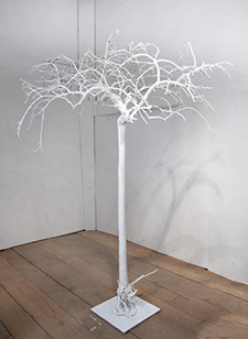 Nancy Azara, Sweet Pea, 2016, gessoed tree, 60 x 24 x 29 in. (artwork © Nancy Azara; photograph by Jude Broughan)