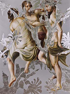 Angela Fraleigh, the breezes at dawn have secrets to tell, 2015, oil and silver metal leaf on linen, 90 x 66 in. (artwork © Angela Fraleigh)