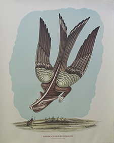Beauvais Lyons, Ornithological Quadrupeds: American Badger Swallow, 2012, hand-printed lithograph, 28 x 22 in. (artwork © Beauvais Lyons)